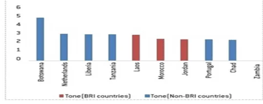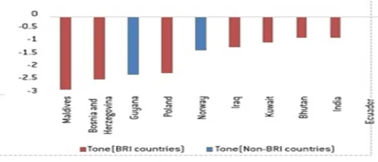 La Figura 1 y la Figura 2 anteriores muestran además los países con los sentimientos más positivos y negativos hacia el BRI. La primera impresión es que Europa y Asia son ambos extremos de positividad y negatividad. Eso significa que la iniciativa de China ha penetrado particularmente en las dos regiones, pero es evaluada de manera muy diferente por diferentes países y regiones.