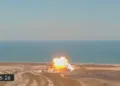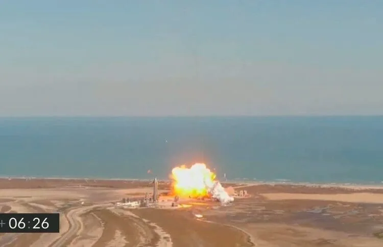 Al acercarse a la plataforma, el Starship volvió a la vertical y encendió sus motores. Sin embargo, sólo uno de los tres motores Raptor se encendió, y el vehículo pareció oscilar más allá de la vertical. El vehículo se estrelló en un ángulo de casi 45 grados y explotó 6 minutos y 26 segundos después del despegue.