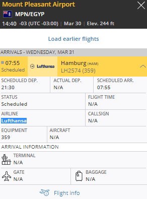 Hoy Lufthansa parte con su Airbus A350 para el segundo vuelo directo desde Hamburgo a Mount Pleasant (MPN) en las Islas Malvinas. Por la noche, el vuelo LH2574 despega hacia Mount Pleasant a las 9:30 p.m. (hora local)
