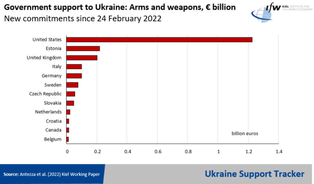 Francia rompió la barrera de 100 millones de euros en suministro para inversión en equipo militar desde el comienzo de la guerra, en un envío complementado con Eslovaquia (contribuyó baterías de misiles antiaéreos S-300) y la República Checa (tanques, vehículos de combate de infantería y sistemas de artillería).