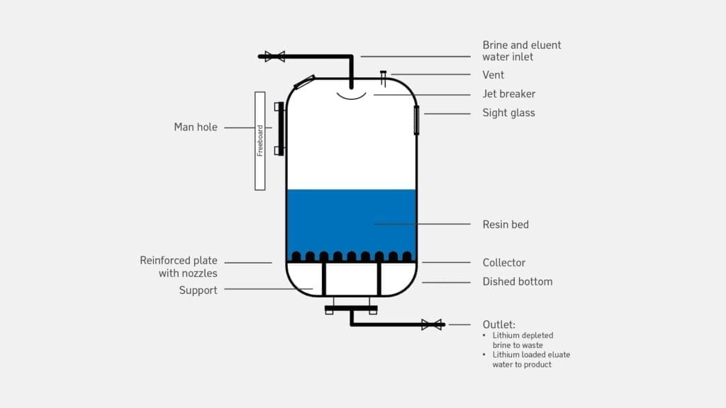 Luego de que esta resina se satura con el litio, se utiliza agua reciclada para recuperar más del 90% del litio presente, reduciendo significativamente el consumo de energía en el proceso de extracción, además de que el agua no termina contaminada y se devuelve al medio ambiente a través de precipitación natural.