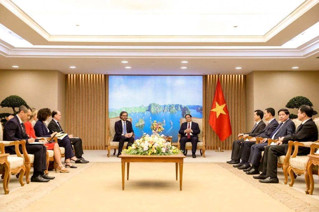El canciller Santiago Cafiero mantuvo una reunión con el primer ministro de Vietnam, Pham Minh Chính, el títular de la cartera de relaciones internacionales de dicho país, Bui Thanh Son, y el ministro de industria y comercio del país del sudeste asiático, Nguyen Hong Dien.