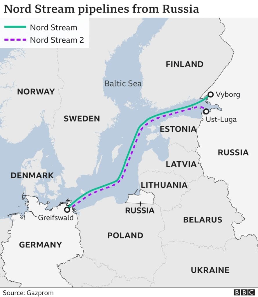 Mientras que Rusia a través de Dmitry Peskov afirmó que cumpliría con sus obligaciones y negó cualquier afirmación sobre posibles motivaciones políticas para detener el flujo de gas, Alemania insiste en que el mismo fue reducido a un 40% de los niveles esperados, y que anteriormente solo operaba al 20% de su capacidad. Sin embargo, desde que comenzó la invasión a Ucrania, Rusia ha cortado completamente el suministro a Bulgaria, Dinamarca, Finlandia, Países Bajos y Polonia.