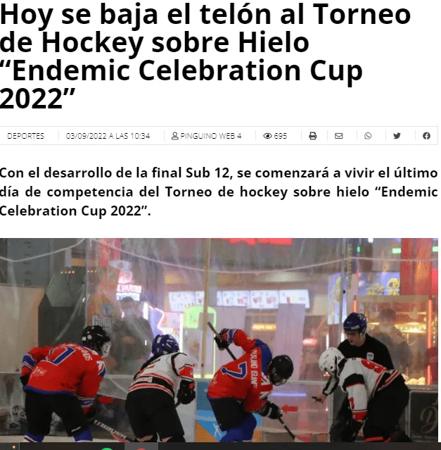 La noticia del torneo, publicada en el medio El Pingüino, señala que la “Endemic Celebration Cup, se realizó con 3 equipos dueños de casa e invitados de Iquique, Argentina y Falkland Islands” y que el sábado se realizaron las finales.