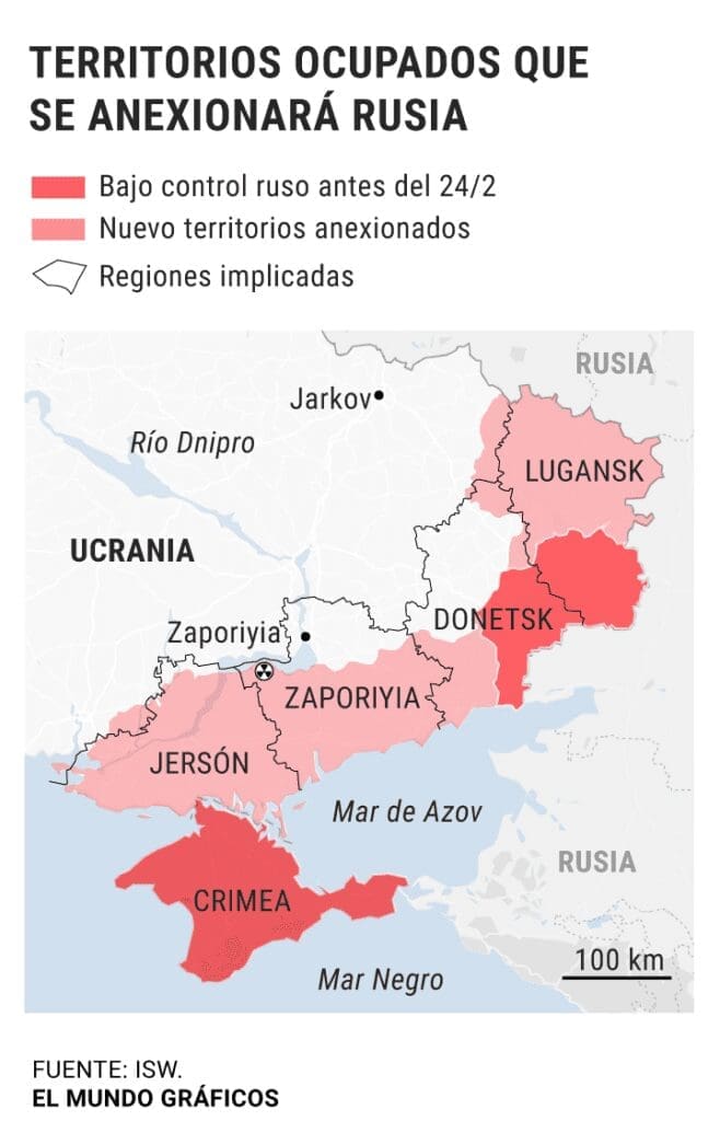 Para que Rusia se anexione formalmente los territorios, se firmará un tratado que luego será ratificado por el Parlamento ruso. Moscú considerará entonces las zonas como parte de Rusia, y el “paraguas” de sus defensas nucleares se extenderá a ellas.