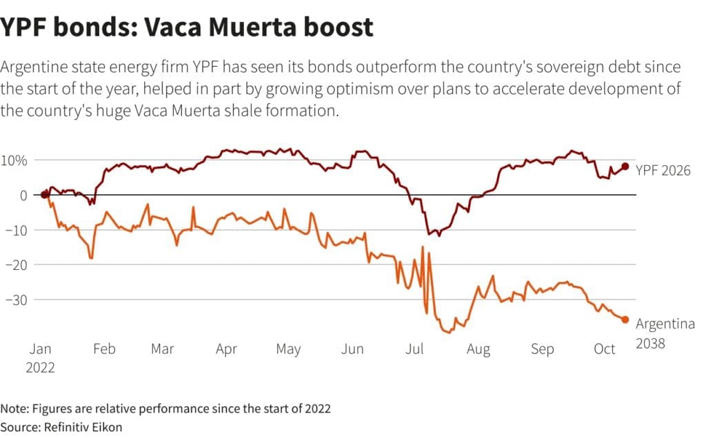 Para muchos, el potencial de crecimiento de Vaca Muerta es enorme, considerando que se trata de la segunda reserva más grande del mundo de gas de esquisto y la cuarta más grande de petróleo de esquisto. Por lo pronto, los bonos 2026 y 2033 de YPF subieron más de cinco centavos por dólar cada uno este año a unos 84 centavos y 53 centavos respectivamente.