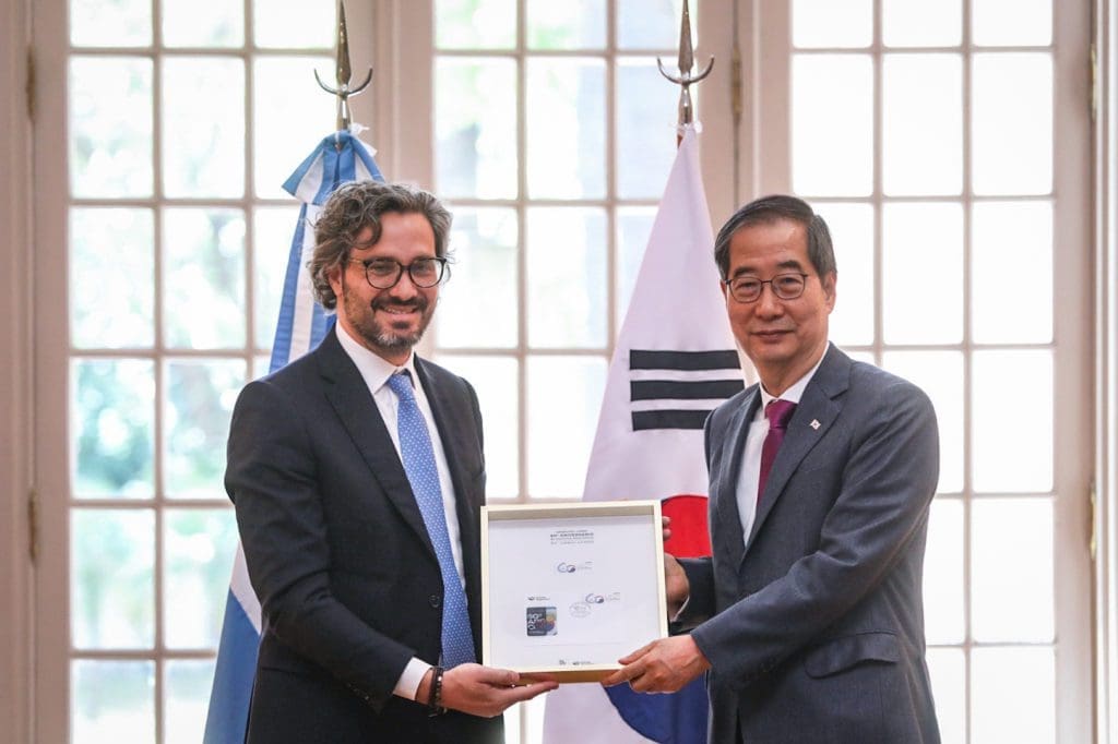 Canciller Santiago Cafiero junto al Primer Ministro Han Duck-soo. Fuente: Cancillería Argentina.