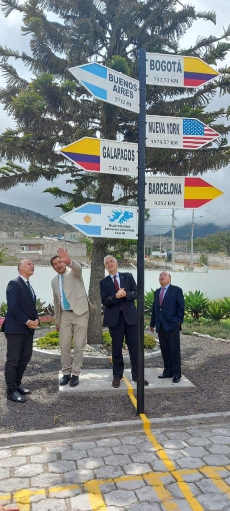 El pasado miércoles 12 de octubre, el Secretario de Malvinas, Antártida y Atlántico Sur, Guillermo Carmona, arribó a Quito acompañado por el Embajador Argentino en Ecuador, Gabriel Fuks. La visita se dio en el marco de una misión oficial en la región, en donde se buscó afianzar los lazos en materia de cooperación antártica y oceánica junto con un renovado apoyo al reclamo argentino respecto a la soberanía sobre Malvinas. Además, se procedió con el descubrimiento de una señalética de Malvinas en una zona que se conoce como “Mitad del Mundo”.