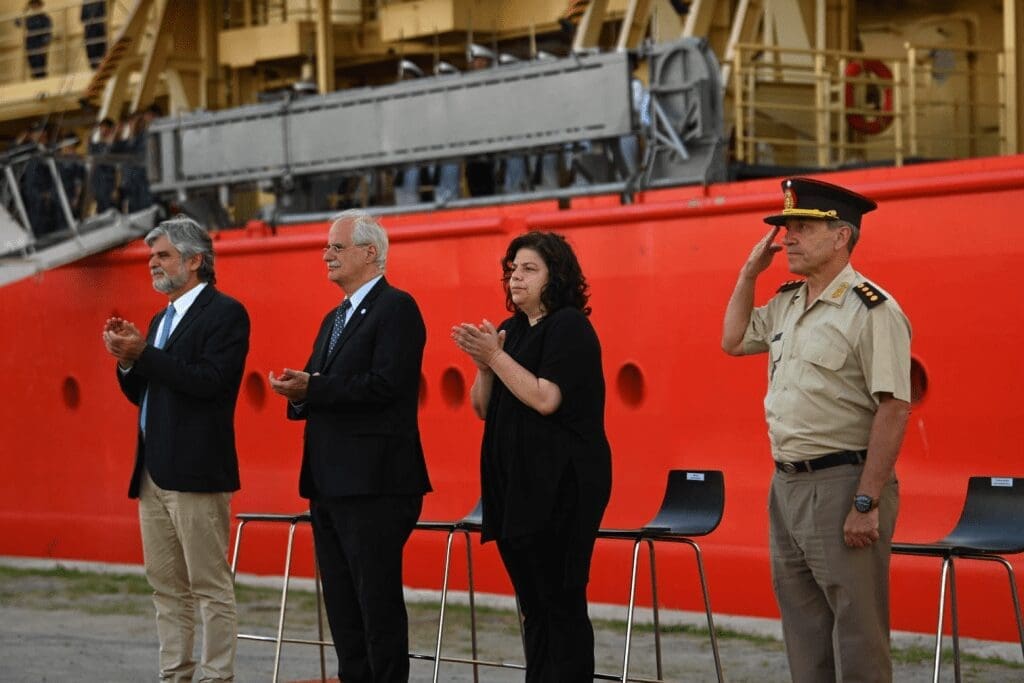 Mientras Taiana destacaba el esfuerzo y compromiso de todo el personal que zarpa hacia la Antártida, Filmus añadió que se trataba de una campaña con “connotaciones especiales”, como la construcción de tres laboratorios y dos refugios. “Lo importante es que la ciencia reafirma soberanía”, destacó el titular de Ciencia y Tecnología. Asimismo, la titular de Salud destacó el importante rol que tuvieron las fuerzas armadas durante la pandemia y se mostró agradecida por la capacidad de respuesta.