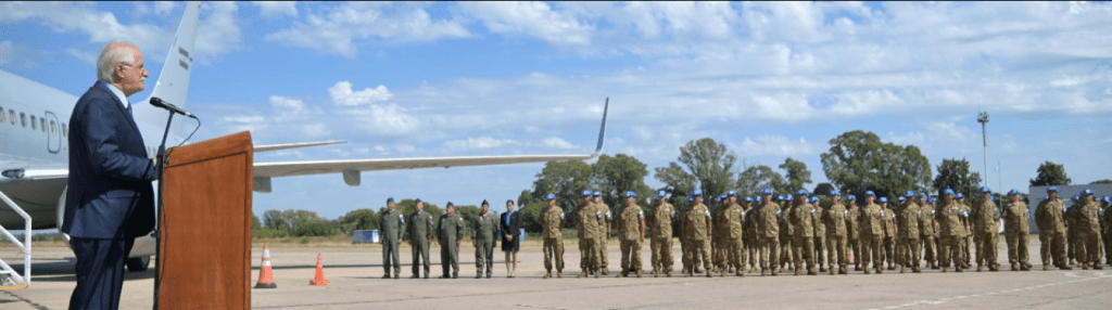 El ministro destacó que la presencia de la Argentina en este tipo de situaciones muestran la posición pacífica que constantemente se reitera, y que también se replica sobre la cuestión Malvinas. “En esta Misión de Paz tenemos una tarea específica, la de actuar como fuerza pacificadora entre dos sectores para evitar incidentes y la reanudación de las hostilidades, pero además vamos principalmente para demostrar el compromiso de la República Argentina con el sistema multilateral de Naciones Unidas”, agregó.