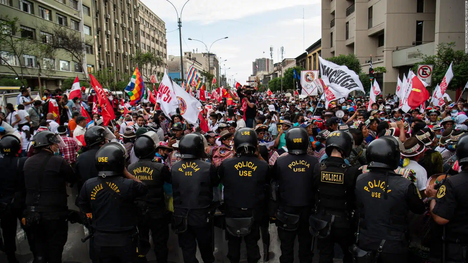 “Por decreto supremo, son siete regiones en el sur nombradas en estado de emergencia, entre ellas, Puno, a cargo de las Fuerzas Armadas. La Policía Nacional pasa a ser componente de las mismas, junto al terrestre, aéreo, marítimo y las fuerzas especiales”, sostuvo en referencia a dicho departamento, fronterizo con Bolivia y epicentro actual de las protestas.