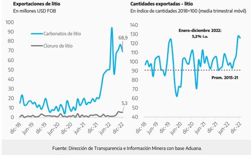 En términos pura y exclusivamente de precios, y según el Ministerio de Economía, la tonelada de carbonato de litio alcanzó los 71.500 dólares en febrero, mientras que el precio promedio en 2022 alcanzó los 71.189 dólares (siendo un 335% superior al precio promedio del año 2021). Por ahora, se espera que estos números suban aún más considerando la expansión de proyectos en el país, donde hoy día producen el Proyecto Fénix operado por Livent (Catamarca) y el Proyecto Olaroz comandado por Allkem (Jujuy).