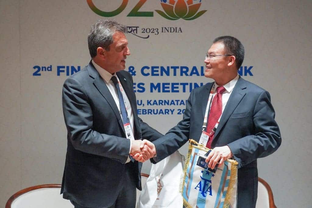 Además, el ministro Sergio Massa mantuvo un encuentro posterior con el viceministro de Finanzas de China, Wang Dongwei, junto a quien acordaron avanzar en la cooperación bilateral económica y financiera relacionada al financiamiento chino a proyectos de infraestructura para el desarrollo en Argentina, sumado a las alternativas para el fortalecimiento de las reservas internacionales argentinas.
