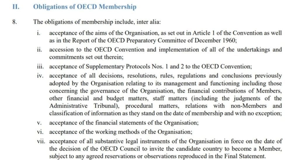 Es importante tener en cuenta que el proceso de obtención de la membresía en la OCDE es complejo, riguroso, lento y no completamente apolítico. Hasta ahora, solo cuatro países latinoamericanos (México, Chile, Colombia y Costa Rica) se han unido desde la fundación de la organización. En esta ocasión, además de Argentina, se invitó a Brasil, Croacia, Perú, Rumania y Bulgaria a iniciar el proceso de membresía.
