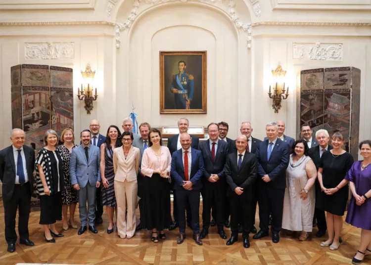 La canciller argentina, Diana Mondino, se reunió durante el día de ayer en el Palacio San Martín con los embajadores y representantes diplomáticos de los países de la Unión Europea acreditados en el país.