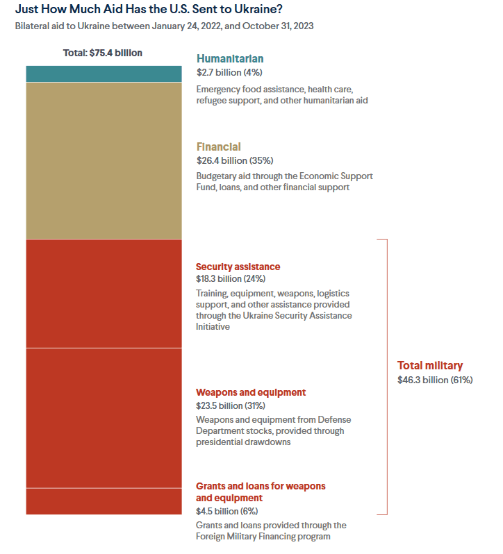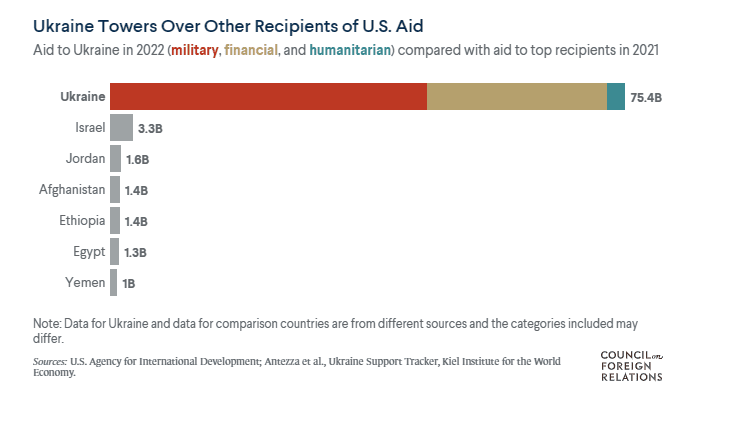 Ahora bien, veamos en algunos gráficos como se distribuyó esta ayuda para con la República de Ucrania y el gobierno de Volodímir Zelenski.