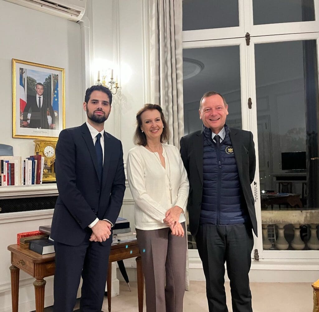 Tras su arribo a la capital francesa, la Canciller se reunió en la sede del Palacio del Eliseo con Emmanuel Bonne – jefe diplomático del presidente Emmanuel Macron – para dialogar sobre los objetivos y planes delineados por el Gobierno de Javier Milei.