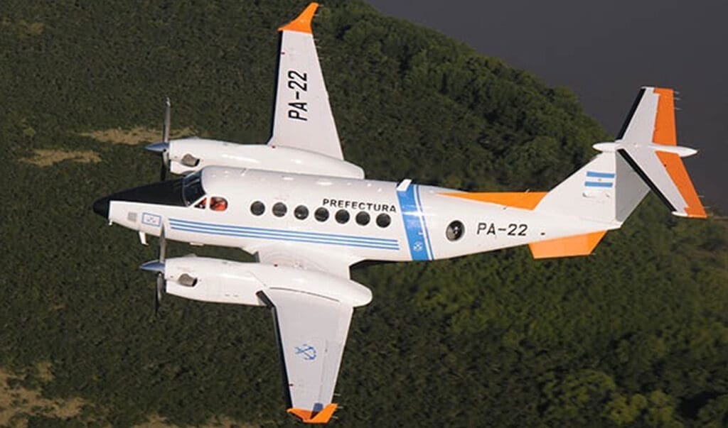 Conocido como Beechcraft B200, la Armada Argentina actualmente cuenta con una aeronave biturbohélice perteneciente a la Escuadrilla de Vigilancia Marítima para cumplir con las tareas de operaciones de vigilancia y control de los espacios marítimo de jurisdicción nacional.