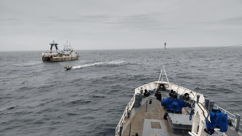 La tripulación inició un procedimiento de detención cuando identificaron al Calvao pescando ilegalmente en aguas bajo jurisdicción argentina. A pesar de las órdenes de la Autoridad Marítima, el buque infractor evadió las autoridades y emprendió la fuga hacia aguas internacionales, desencadenando una persecución de acuerdo con los protocolos de la Convención de las Naciones Unidas sobre el Derecho del Mar (CONVEMAR).