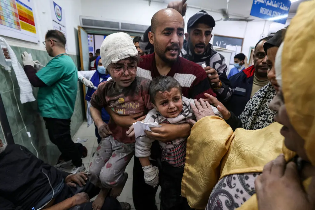 Niños heridos en el bombardeo israelí en el hospital de Al Najjar en Rafah el domingo.Crédito…Agencia France-Presse — Getty Images