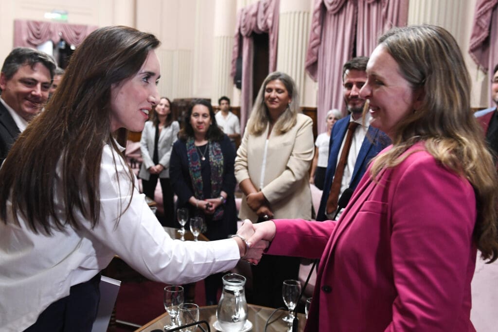 La presidente del Senado Victoria Villarruel se reuni— con la embajadora de Reino Unido Kirsty Hayes en el sal—n Eva Peron del palacio legislativo; el 05 de marzo de 2024, en Buenos Aires, . Foto:( Luciano Imgaramo /Comunicaci—n Senado.)