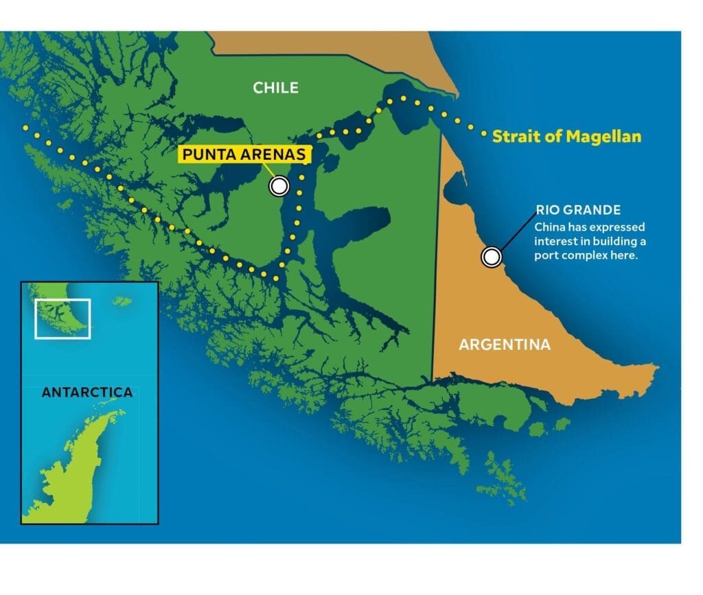 Al mismo tiempo, Patricia Garip, advierte que las potencias mundiales se encuentran en una carrera por ampliar su presencia en el Atlántico Sur. Por ejemplo, China ha manifestado su interés por construir un complejo portuario cerca de la desembocadura atlántica del Estrecho, justo al otro lado de la frontera chilena, en Argentina. Por otro lado, en abril de 2023, la jefa del Comando Sur del ejército estadounidense, la general Laura Richardson, visitó Argentina y Chile, deteniéndose en Punta Arenas para una sesión informativa sobre seguridad y un recorrido por el estrecho.