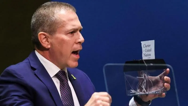 Por su parte, el embajador de Israel, Gilad Erdan, retomó la historia y afirmó que “tras la subida al poder de Hitler, los nazis habían intentado aniquilar al pueblo judío y a todos aquellos que consideraban infrahumanos, pero las fuerzas del bien lucharon para devolver la paz al mundo, y la ONU se fundó para garantizar que semejante tiranía no volviera a levantar la cabeza”. Utilizó este argumento para afirmar que en la Asamblea “se estaba haciendo lo contrario, acogiendo en sus filas a un Estado terrorista”, y que “han abierto las Naciones Unidas al nazismo moderno. Me pone enfermo”.