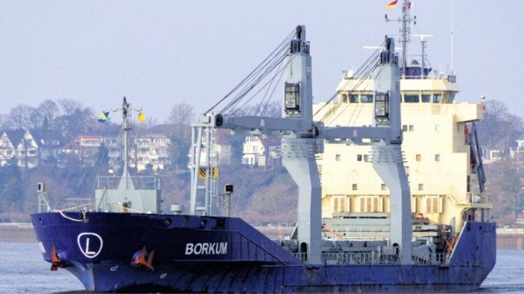 Los códigos de identificación especificados en la documentación, obtenida de manera extraoficial por la Red de Solidaridad contra la Ocupación Palestina (RESCOP), sugieren que el Borkum llevaba 20 toneladas de motores de cohetes, 12,5 toneladas de cohetes con cargas explosivas, 1.500 kg de sustancias explosivas y 740 kg de cargas y propulsores para cañones.