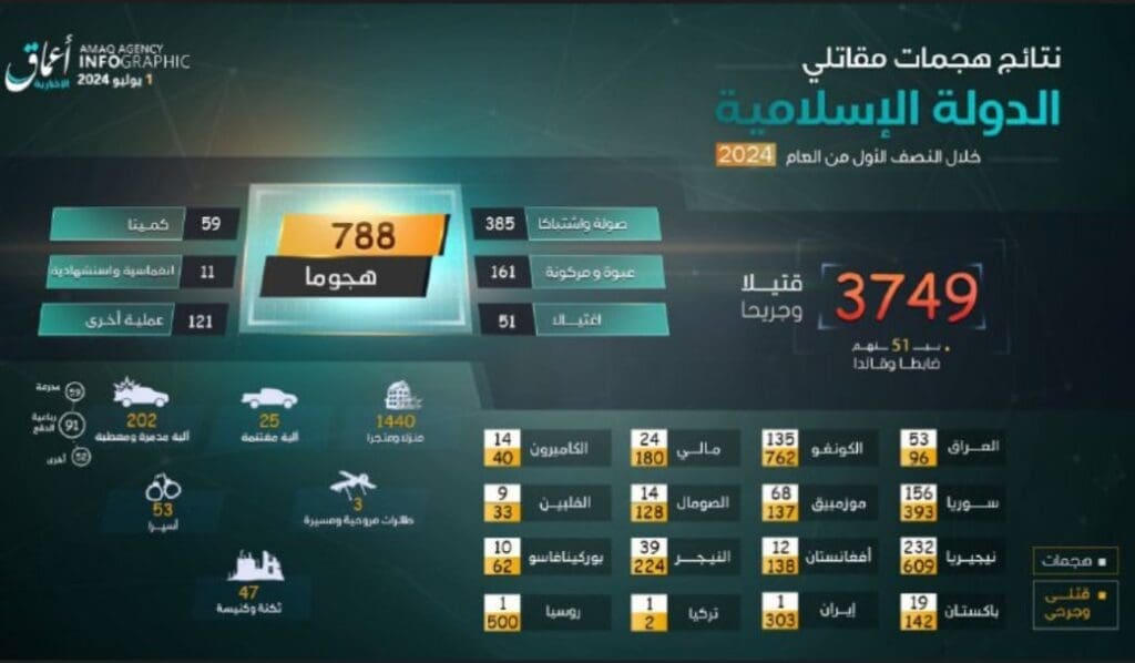 Con relación a esto, días atrás, el propio ISIS dio a conocer un comunicado en donde figuraban las estadísticas de atentados terroristas perpetrados por este grupo a lo largo de los primeros seis meses de 2024. Verdaderamente, las cifras ofrecidas son aterradoras: Se puede contabilizar un total de 3749 personas fallecidas o heridas en unos 788 ataques terroristas llevados a cabo por ISIS en más de 15 países y tres continentes diferentes.