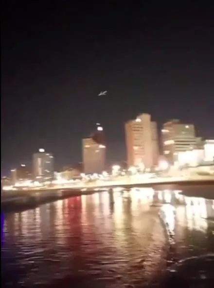 Captura de video donde se aprecia la trayectoria del drone hutí, previo a su impacto contra un edificio en Tel AViv