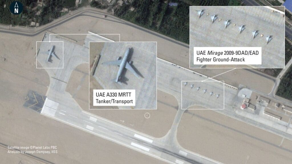 El despliegue emiratí en Xinjiang también incluye un avión cisterna Airbus MRTT y, notablemente, la adición de un refugio temporal asociado con operaciones de vehículos aéreos no tripulados (UAV). Esta expansión de capacidades sugiere una profundización en la cooperación técnica y operativa entre ambas fuerzas aéreas.