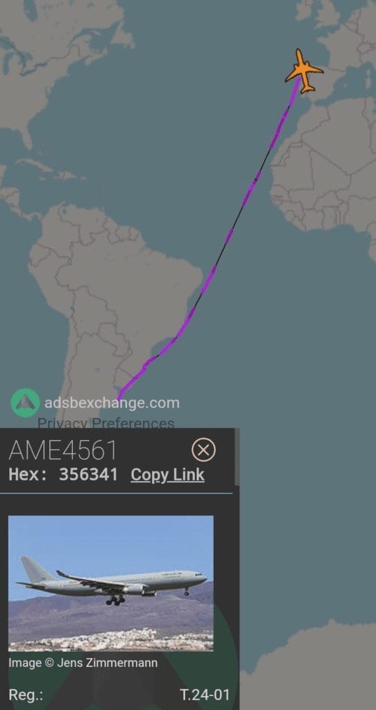 Entre el sábado y este domingo, el A330 T.24-01 del Ejército del Aire de España aterrizó en Malvinas tras 14 horas de vuelo para trasladar a los tripulantes españoles del pesquero Argos Georgia que se hundió en proximidad a las Islas el pasado lunes 22 de julio. El avión de las fuerzas españolas buscó repatriar a los rescatados y fallecidos del incidente en el buque pesquero.