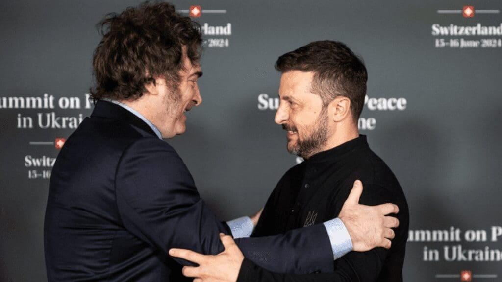 El gobierno argentino actual se ha mostrado como un gran aliado de la Ucrania de Zelenski. El pasado mes de junio, ambos mandatarios se reunieron en Suiza en el marco de la cumbre del G7, donde el presidente argentino fue condecorado con la Orden de la Libertad, una medalla que se concede en reconocimiento a su apoyo a la soberanía e independencia de Ucrania. Zelenski agradeció a Milei su asistencia a la Cumbre de la Paz por redes sociales.