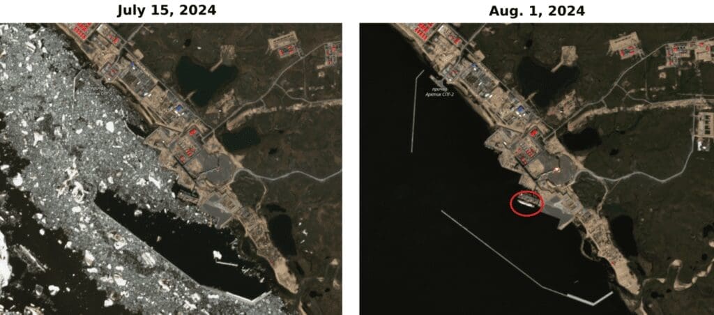 Según la información recabada, el buque visto en la compañía rusa en el Ártico posee unos 280 metros de eslora, casi exactamente la eslora de un buque de GNL típico, y se encontraba atracado en las instalaciones de Arctic LNG 2 alrededor del pasado 1 de agosto.