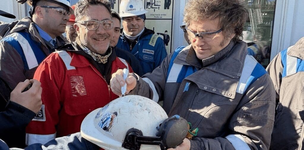 Antes de embarcarse en su viaje a Chile, Milei visitó la localidad de Añelo, en la provincia de Neuquén. Allí recorrió en helicóptero los yacimientos de gas y petróleo de Vaca Muerta junto al gobernador de la provincia de Neuquén, Rolando Figueroa.