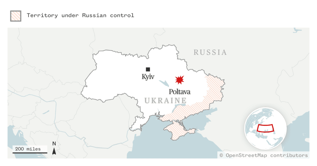 El 3 de septiembre, dos misiles balísticos alcanzaron Poltava, una ciudad de aproximadamente 300.000 habitantes, ubicada a unos 120 kilómetros de la frontera rusa. Según el Ministerio de Defensa de Ucrania, el ataque fue particularmente letal debido al corto intervalo de tiempo entre la activación de la alarma antiaérea y el impacto de los misiles, lo que dejó a las víctimas sin tiempo suficiente para buscar refugio.
