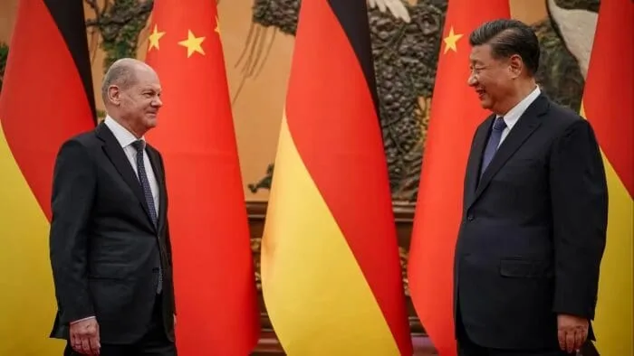 Olaf Scholz, de Alemania, junto a Xi Jinping, de China. Fuente: Financial Times