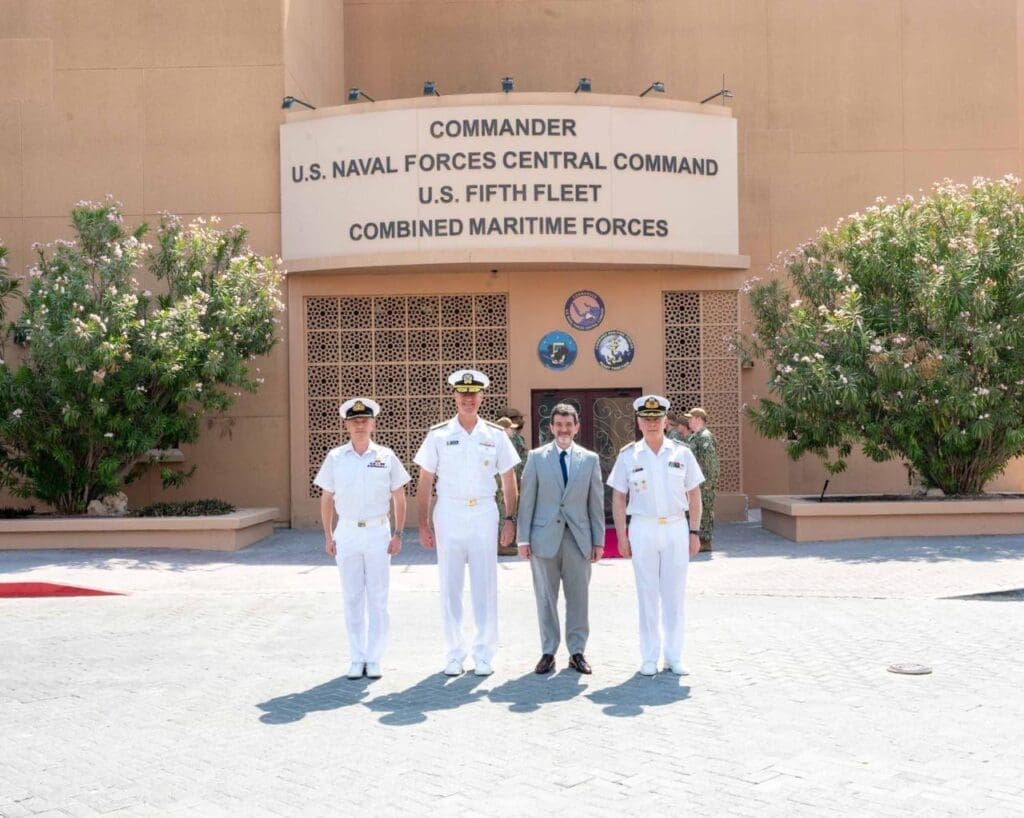 A los fines de formalizar la integración de la Armada Argentina a las Fuerzas Marítimas Combinadas, una delegación del Ministerio de Defensa integrada por el Secretario de Asuntos Internacionales (SAID), Magíster Juan Gerardo Battaleme Martínez, y el Comandante de Adiestramiento y Alistamiento de la Armada (COAA), Contraalmirante Juan Carlos Coré, fue recibida por el Comandante de la 5ta Flota de la Armada de los Estados Unidos y Comandante de las Fuerzas Marítimas Combinadas, acompañado por el Segundo Comandante del CMF, Comodoro Mark Anderson.