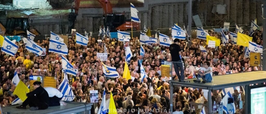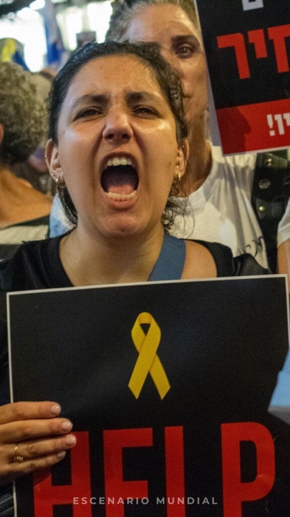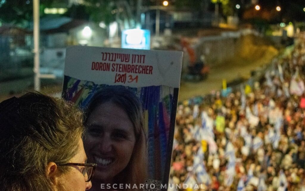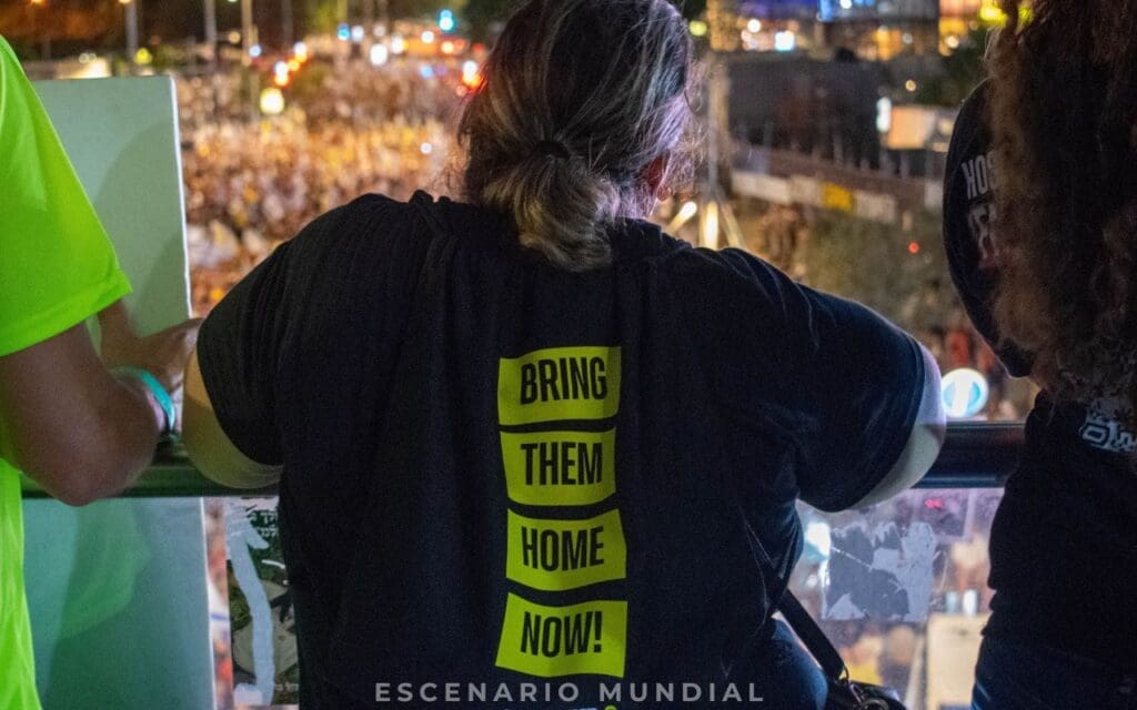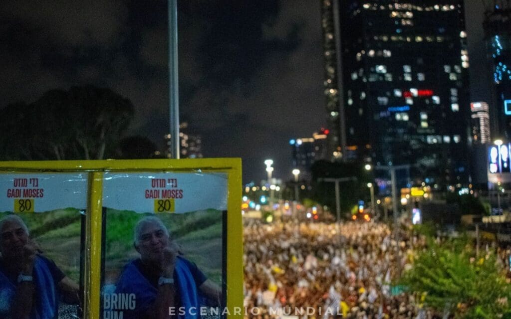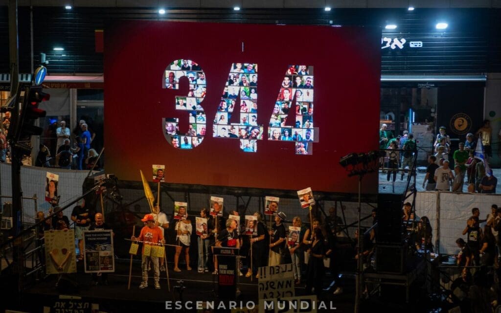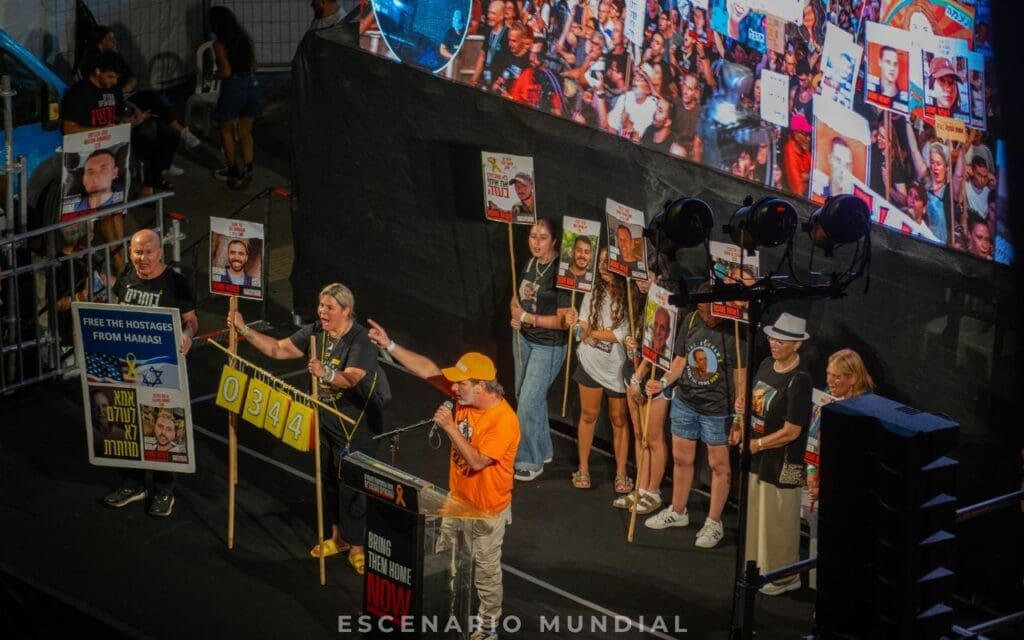 Fuentes consultadas por Escenario Mundial confirmaron que más de 200.000 personas se agruparon en las avenidas de Tel Aviv, en una demostración masiva de apoyo a las familias de los rehenes. La protesta principal fue organizada por el Foro de Familias de Rehenes, que desde el 7 de octubre realiza manifestaciones semanales para mantener vivo el reclamo por la liberación de sus seres queridos.