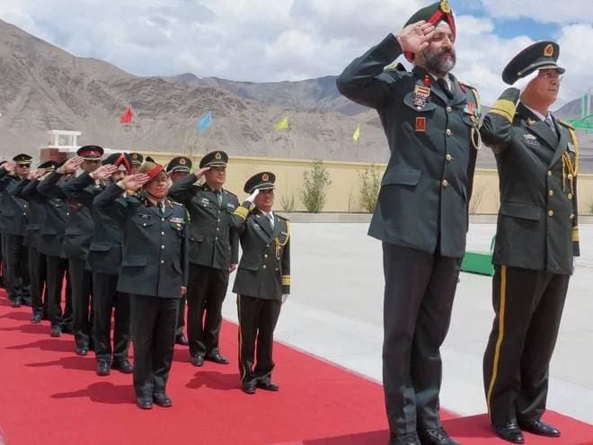 Imagen representativa. El brigadier JKS Virk y el coronel superior Chen Zheng Shan, del Ejército Popular de Liberación, en la reunión ceremonial del personal fronterizo en Daulat Beg Oldie, en Ladakh, en 2015. Créditos: PTI
