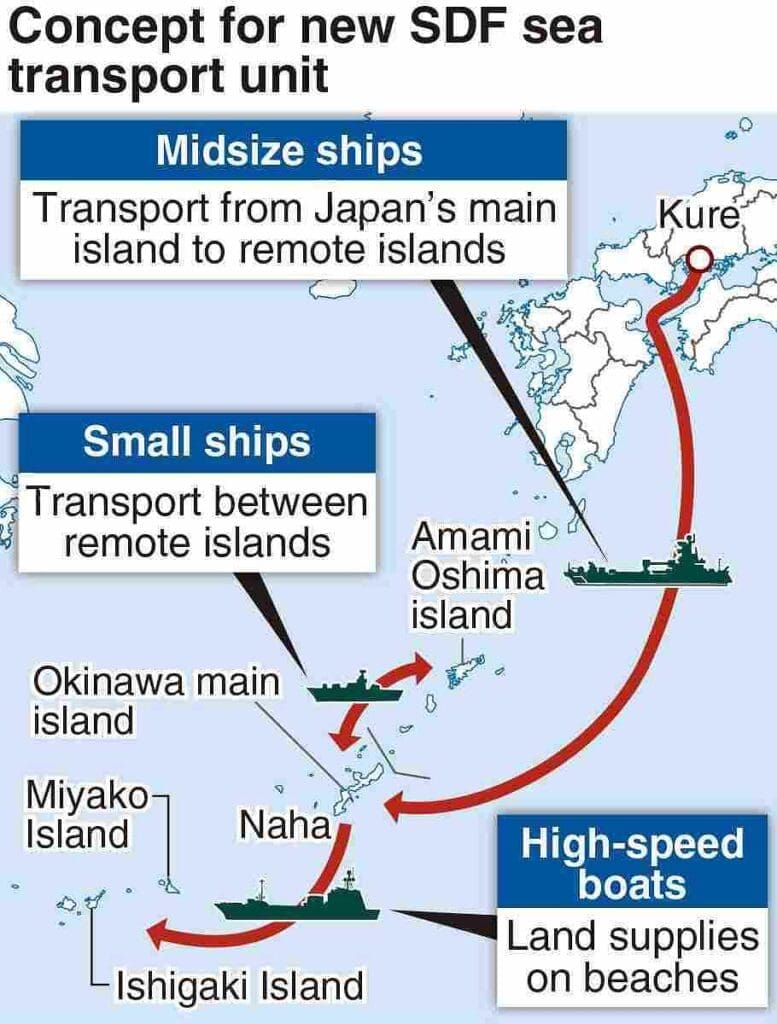 En ese contexto, el concepto del Grupo de Transporte Marítimo de Japón ha estado en desarrollo desde 2018 bajo el Programa de Defensa a Mediano Plazo (MTDP). En 2021, el Ministerio de Defensa japonés confirmó los roles de defensa conjunta de la unidad, pero bajo el liderazgo de la Fuerza Terrestre de Autodefensa de Japón (JGSDF).