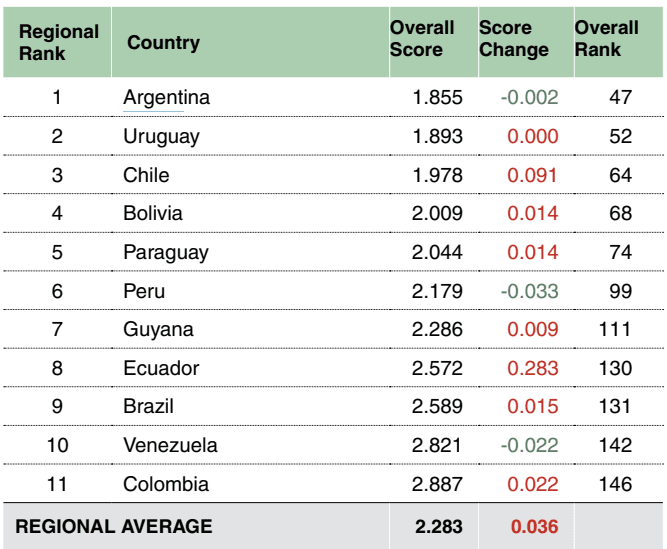 Para el análisis de la seguridad en América Latina, el Índice de Paz Global (IPG) emplea 23 indicadores para evaluar la seguridad de cada país. Entre los factores analizados se incluyen: