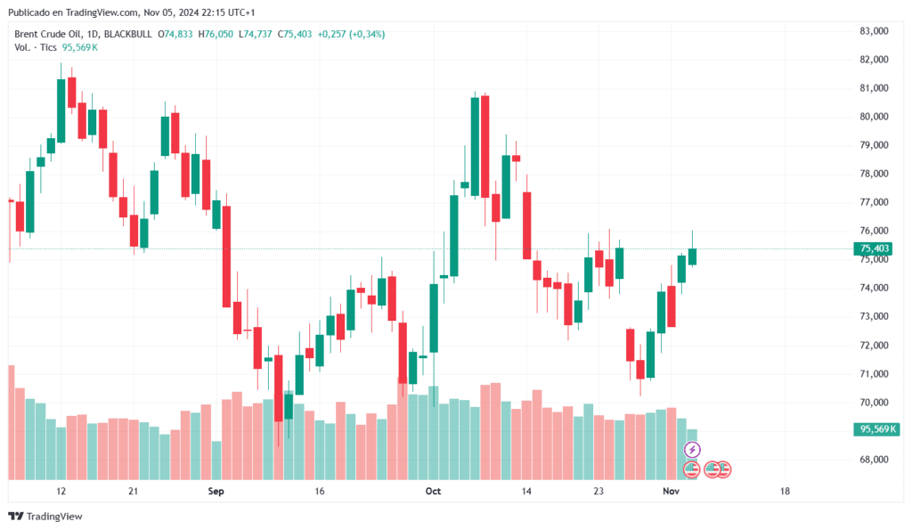 Respecto al mercado de commodities, los precios del petróleo también experimentaron unas breves subidas este martes, con el West Texas Intermediate aumentando 27 centavos a US$ 71,74 por barril, y el crudo Brent alcanzando los US$ 75,403 por barril.
