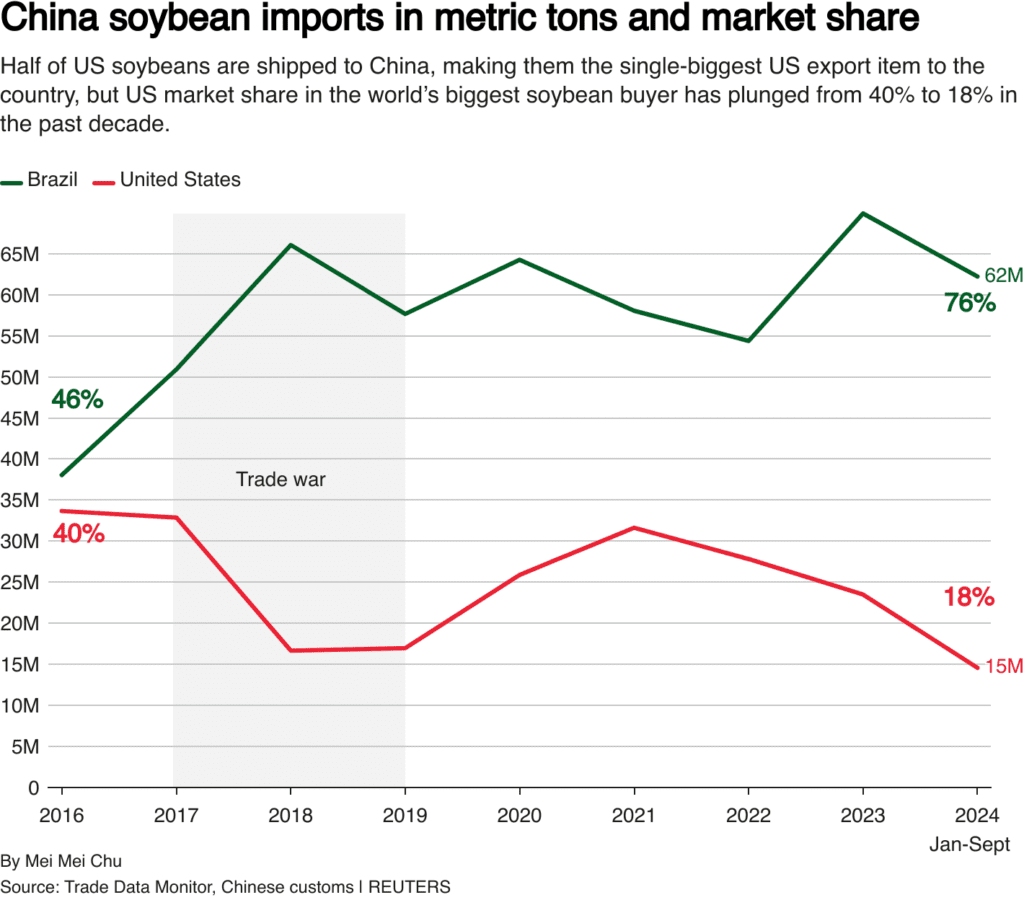 La aplastante victoria de Donald Trump en las elecciones estadounidenses resaltó su promesa de campaña de imponer aranceles superiores al 60% a las importaciones chinas, lo cual podría desencadenar un aumento en las exportaciones hacia el principal mercado de China antes de que estas tarifas se hagan efectivas.