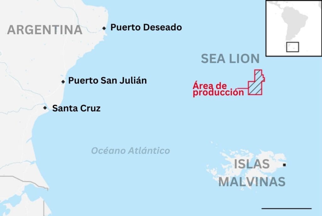 En torno a las recientes actualizaciones sobre el desarrollo de Sea Lion, los avances del Área de Desarrollo Norte fueron presentados al gobierno británico ilegítimo de las Islas para la consulta pública en julio de 2024. Este mes de noviembre, el gobierno confirmó que no se requería más consulta pública, firmando un Memorando de Entendimiento para el suministro de una FPSO (siglas de Floating Production Storage and Offloading, instalación flotante) redistribuida con el Reino Unido.