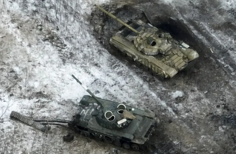 Blindado ruso destruido en uno de los frentes ucranianos. Foto vía X