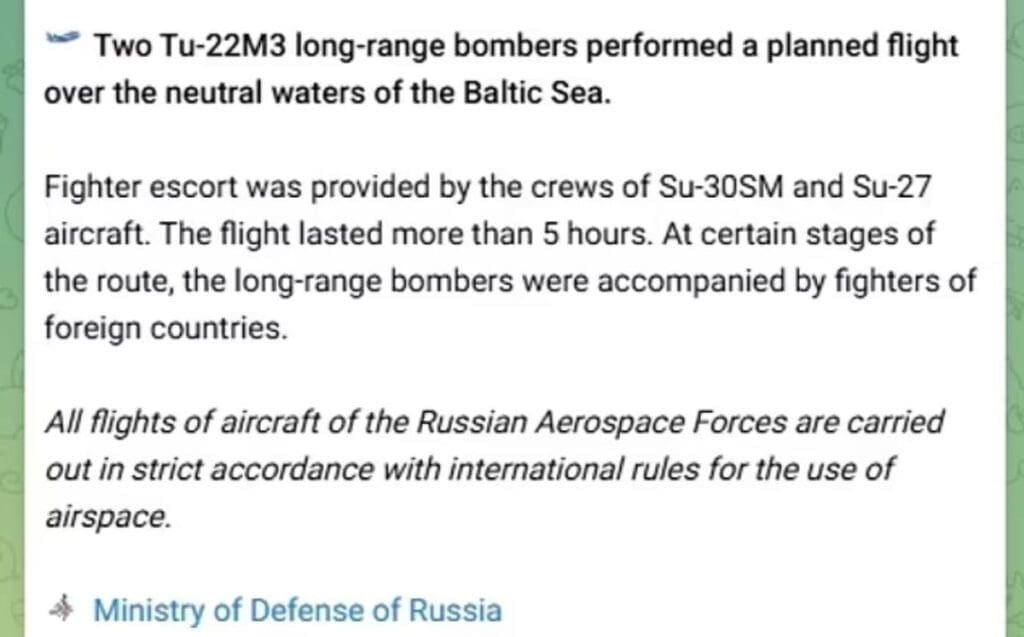 La OTAN ha tenido que desplegar a sus aviones para interceptar a dos bombarderos Tu-22M3 de Rusia, que sobrevolaban el Mar Báltico. Situación similar se vivió en el pasado mes de septiembre, cuando la OTAN envió patrullas aéreas al avistar cuatro aviones militares rusos sobre el Báltico, cerca de la frontera con Letonia.