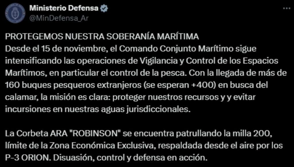 Comunicado del Ministerio de Defensa argentino en X. @MinDefensa_Ar