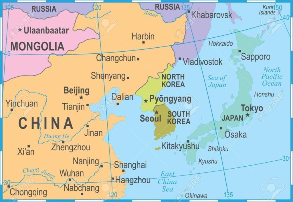 North Korea South Korea Japan China Russia Mongolia Map – Detailed Vector Illustration