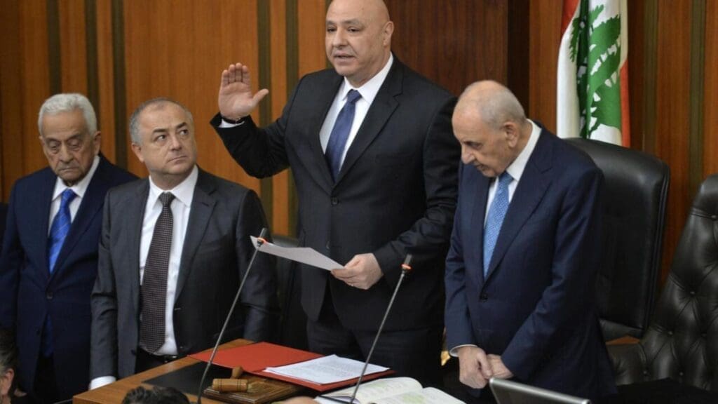 En un contexto de inestabilidad e incertidumbre en todo el país, Aoun fue presentado al público libanés como una figura crucial en un momento de reconstrucción nacional. En su primer discurso, afirmó que comenzaba “una nueva era” para el Líbano, destacando también que “las autoridades tendrán el monopolio de las armas” y que “el Estado debe invertir en su ejército para poder proteger sus fronteras, luchar contra el contrabando y terrorismo” e “impedir la agresión israelí al territorio”.
